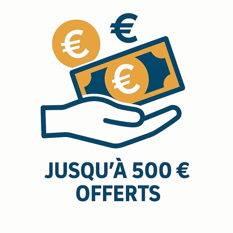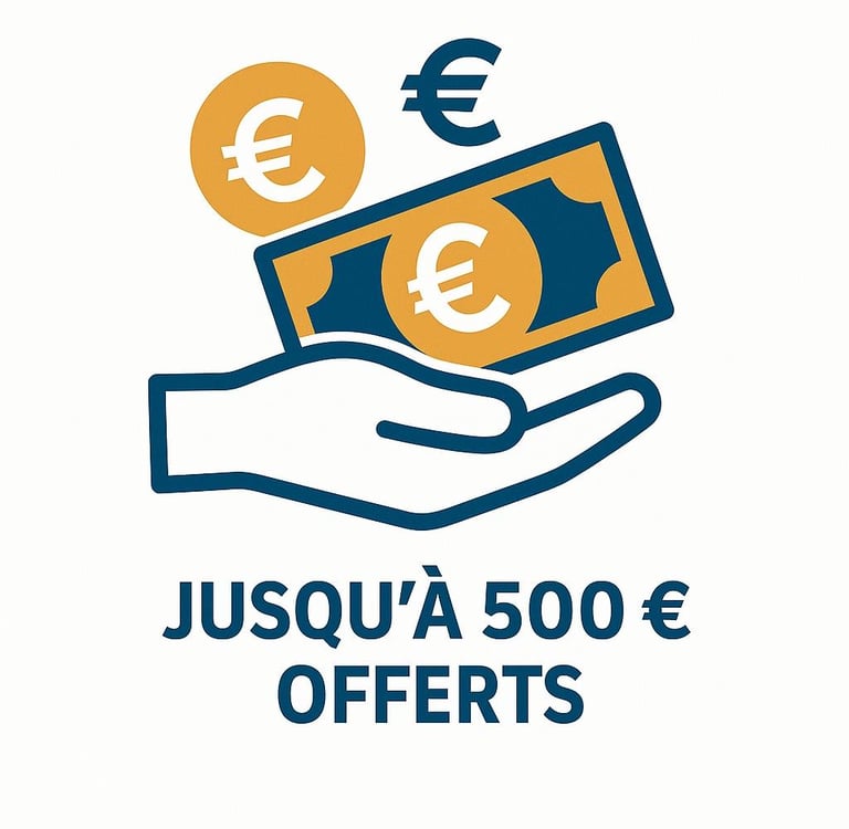 Jusqu'à 500€ offerts